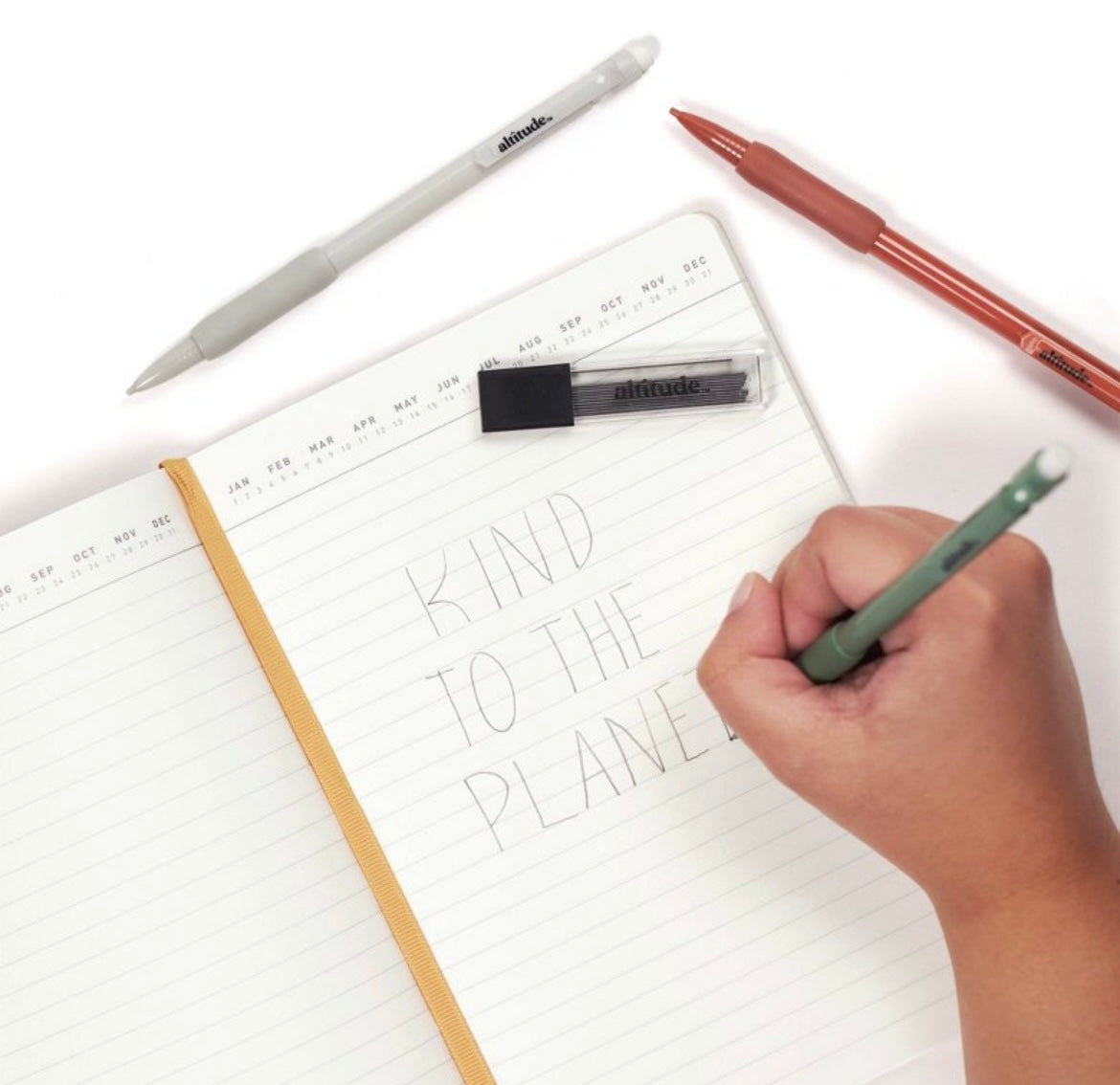This set includes 3 mechanical pencils made with more than 80% recycled PP (polypropylene) and includes a set of extra 0.7 mm lead for easy refills. Your mind will be at ease knowing this product was made with sustainability at the top of mind.